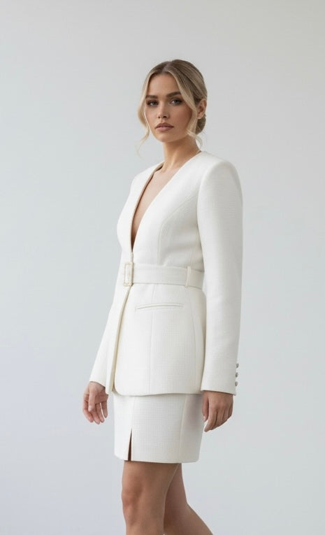 "The IT Skirt" features a blend of classic elegance and modern style, made from high-quality fine tweed in black and white. Its satin lining offers comfort and ease of movement. Suitable for both casual and formal settings, this skirt enhances your wardrobe versatility. Pair it with a blouse for a professional appearance or a trendy top for a night out. "The IT Skirt" combines sophistication and comfort effectively.